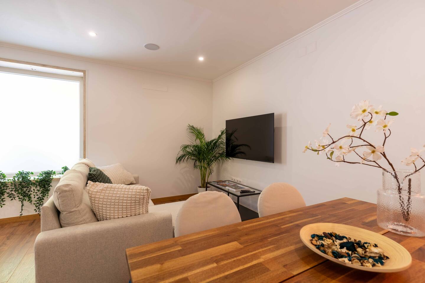 T1 récemment rénové offrant un confort moderne en plein centre de Sintra, idéal pour jusqu'à 4 personnes recherchant un pied-à-terre paisible à proximité des sites touristiques et des transports. Salon avec canapé confortable, TV et enceintes intégrées pour se détendre après une journée de visites ou de plage. Cuisine entièrement équipée avec plaques de cuisson, four, bouilloire, lave-vaisselle, lave-linge et nombreux rangements pour des séjours prolongés en toute simplicité. Configuration des couchages Chambre principale avec placards intégrés et pièce intérieure supplémentaire aménagée en chambre ; comme elle ne dispose pas de fenêtre extérieure, le logement est classé T1 (et non T2) pour plus de clarté et de conformité. Linge de qualité et options occultantes pour des nuits reposantes en famille ou en couple. Salle de bain et conforts Salle de bain lumineuse avec élégante douche à l’italienne et serviettes fraîches pour une ambiance hôtel à la maison. Wi-Fi rapide et espace de travail pratique pour le télétravail ou la préparation des excursions. - Idéal pour les familles ayant besoin de deux espaces nuit séparés sans réserver un vrai T2, avec des attentes claires concernant la pièce intérieure. - Parfait pour les télétravailleurs et les voyageurs du week-end qui apprécient le confort, la marche et l'accès facile aux transports dans le cadre historique de Sintra.